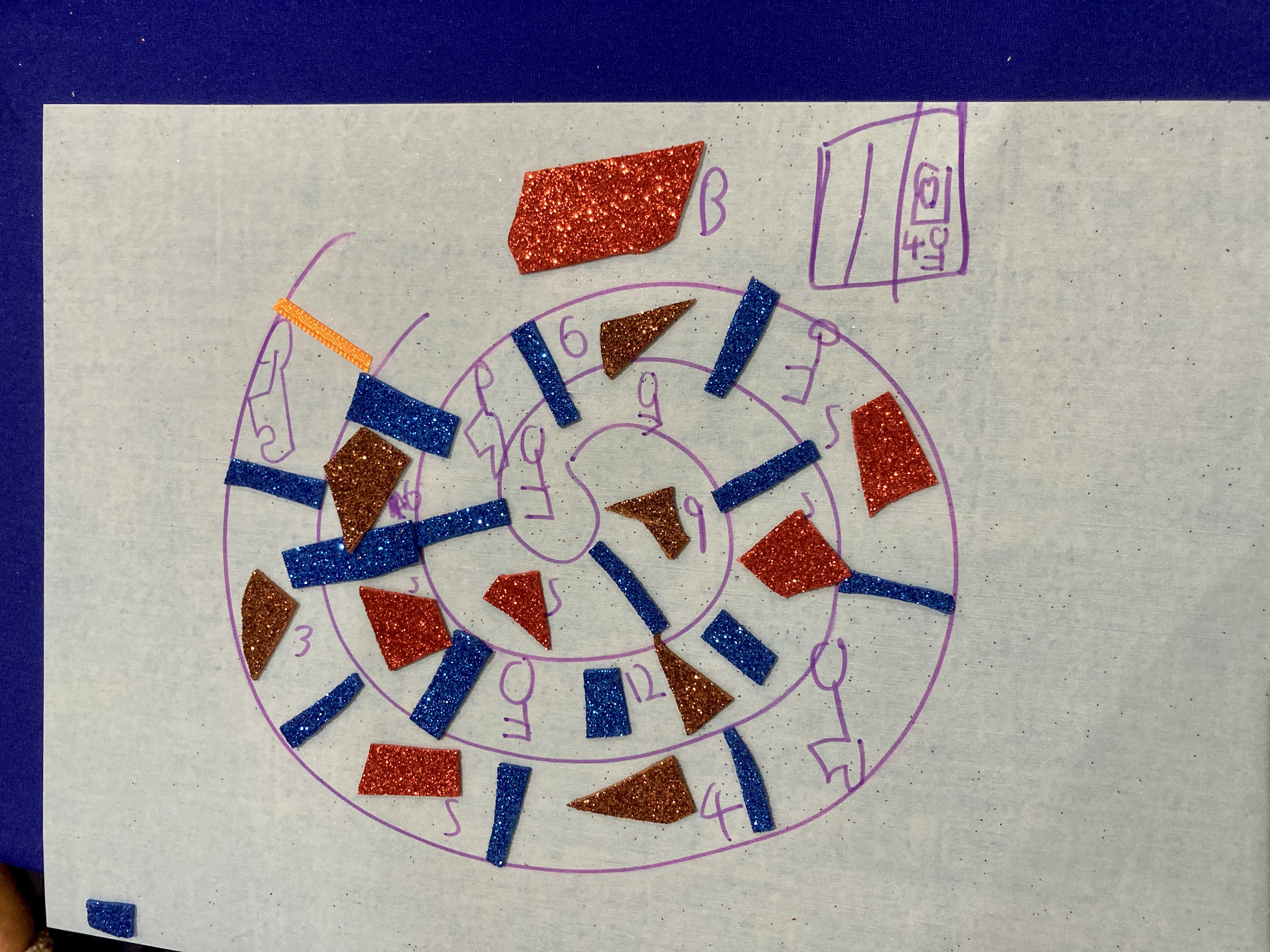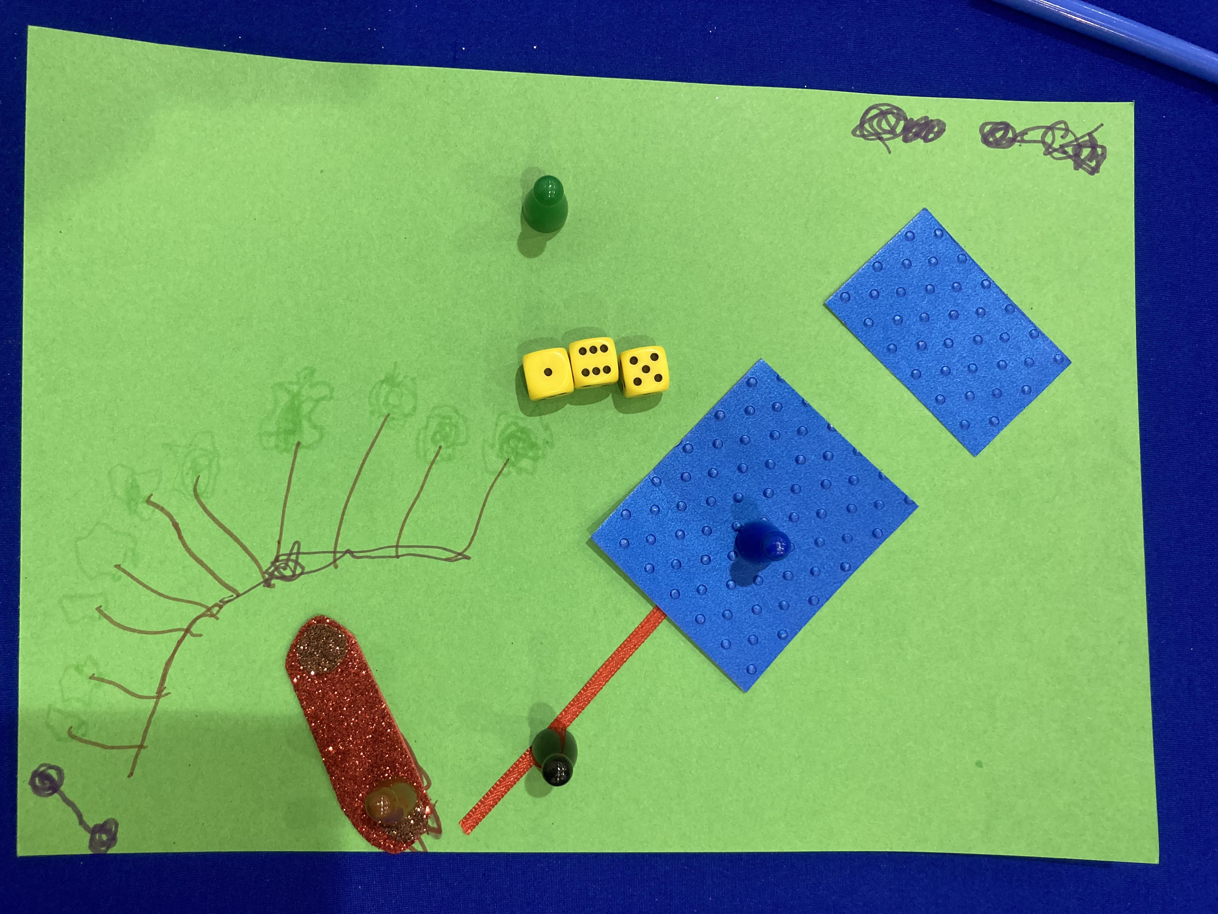 I ran one of the many activities on offer: making a race game. This was a chance for children to use a whole load of paper and craft stuff to make their own game. I’d say it was a simple exercise, but none of the games were simple games. The kids came up with some really interesting ideas and mechanics, including: